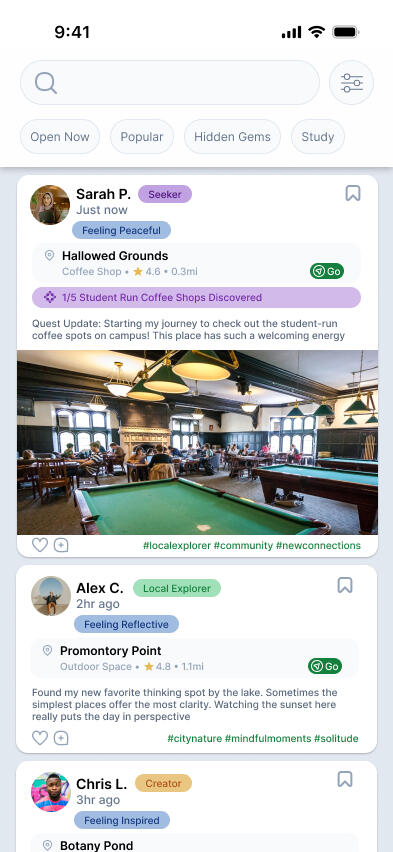 Visit curated locations with insider tips from locals. Each spot is chosen to help you grow in different ways.